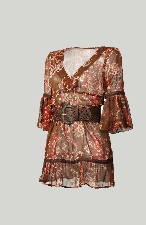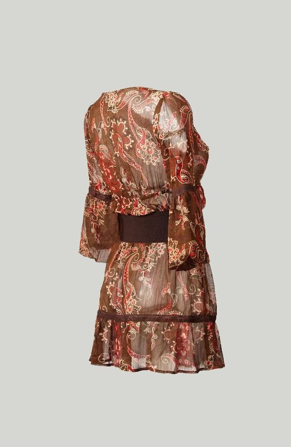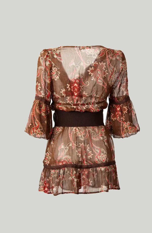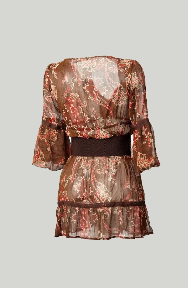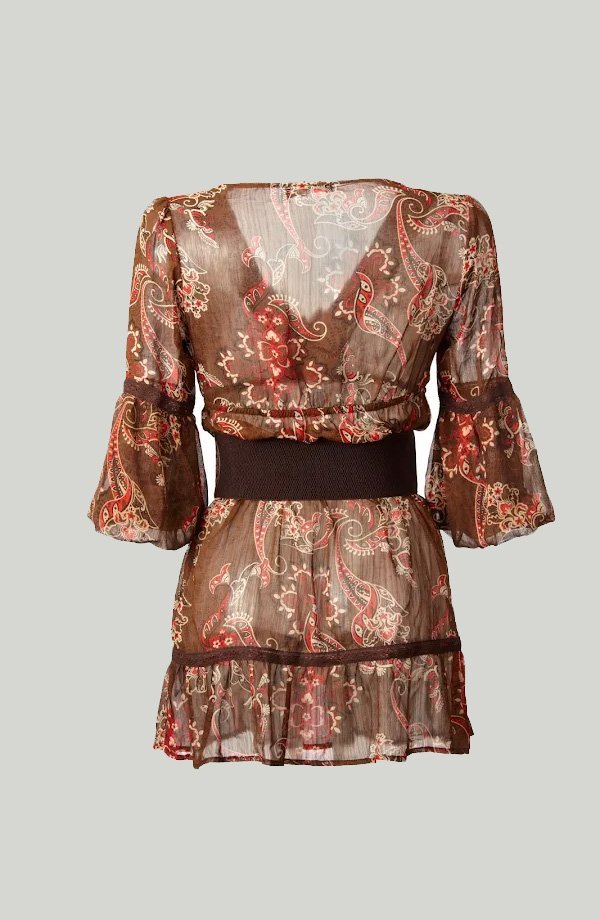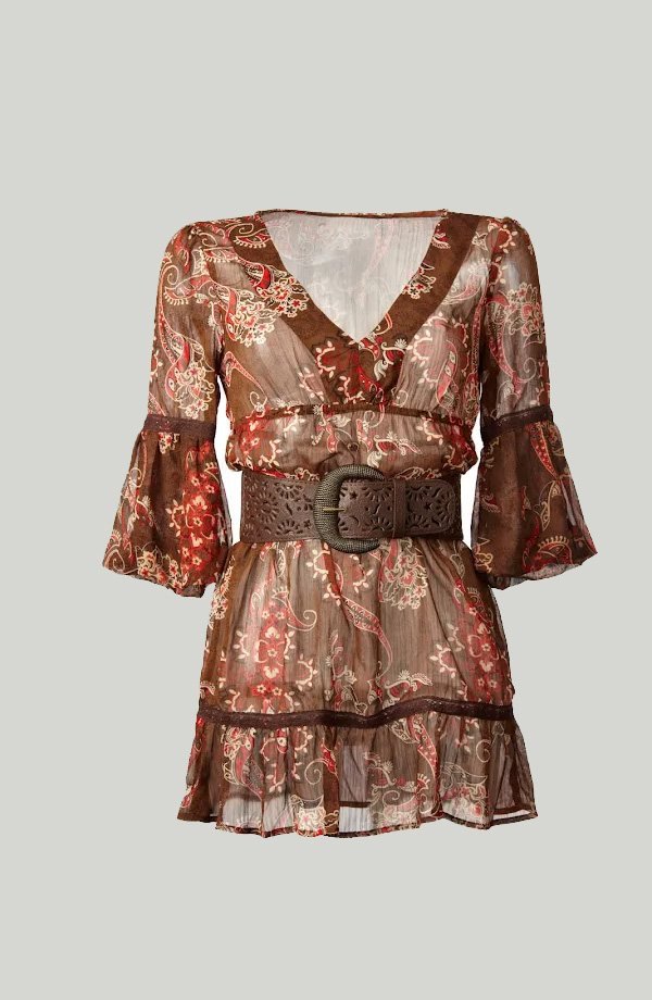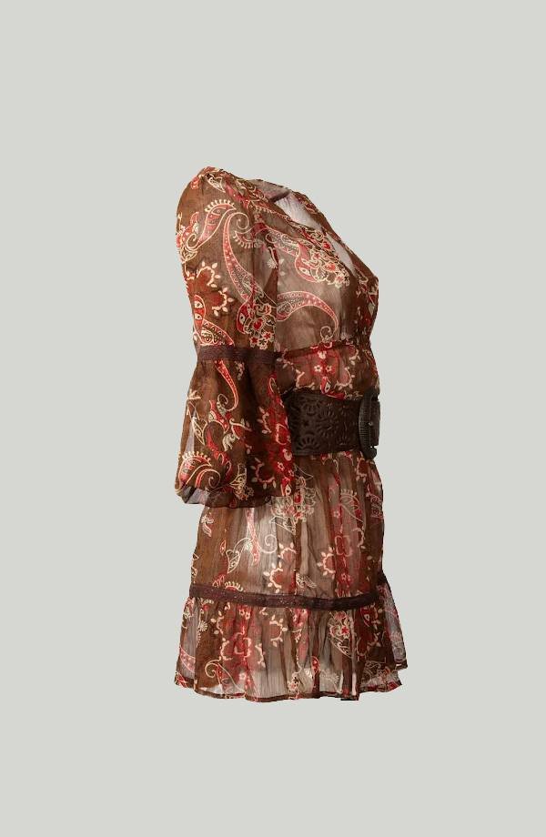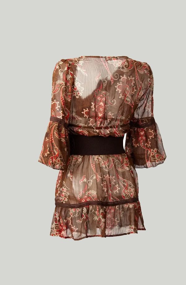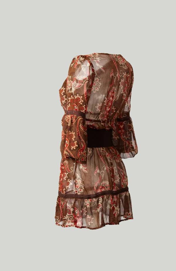 with gorgeous embroidery throughout and smocking at waistline for added shape.